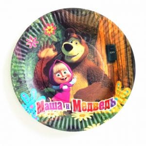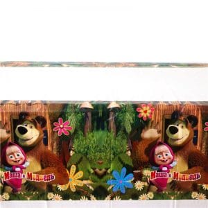 סט 106 חלקים לשולחן יום הולדת- בסגנון מאשה והדוב – צלחות, כוסות, מפות, שקיות הפתעה ועוד